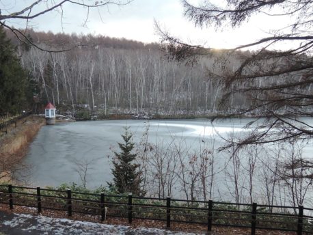 寒さの心配は無さそうですが、肝心なのは池が凍っているかどうか?残念ながら全面結氷でありました。まあしゃあない。